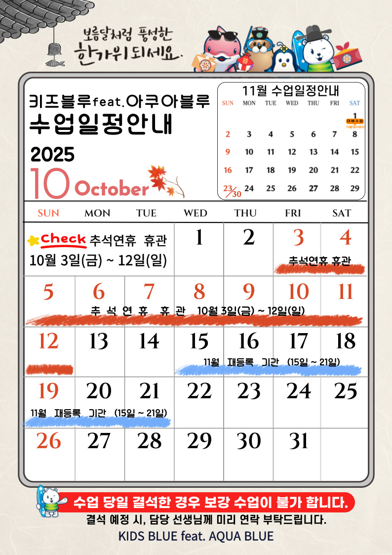 10¿ù ¼ö¾÷ÀÏÁ¤¾È³»