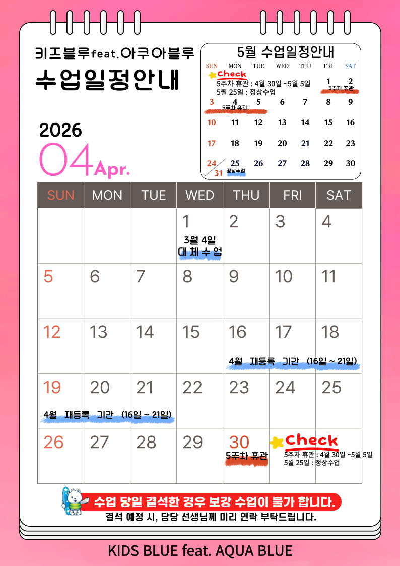 4¿ù ¼ö¾÷ÀÏÁ¤¾È³»